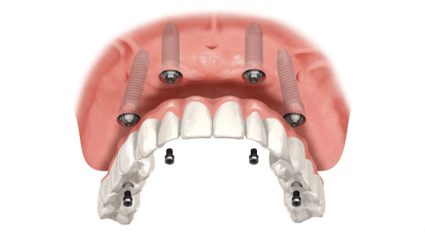 We offer implants to improve the fit and retention of your removable partial or complete denture. Our most popular and affordable solution is adding 2-4 implants to help retain your lower denture. When combined with premium denture teeth, this option provides the ultimate solution for patients who want to restore their smile and oral functionality while maintaining a natural appearance.